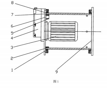 圖面說明:1、做端蓋2、內(nèi)齒圈3、電動(dòng)機(jī)4、減速機(jī)5、齒輪6、輸出軸7、筒幣8、軸承9、右端蓋