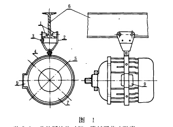 為了便于檢修電動葫蘆,我們設計并制造了一個專用的小滑車。它的四只斜面滑輪1固定在輪框2上;輪框有一面做成活動的。便于掛在工字鋼6上,然后用緊固螺栓3旋緊。吊圈4按電機7的外殼直徑放大30毫米左右,與輪框用螺栓聯(lián)接起來。吊圈的一側留出電機接線盒9的位置。在吊圈上均布四顆電機支撐螺栓5,以便旋緊后將電機支撐和穩(wěn)定在吊圈上,并保持電機中心和電動葫蘆的中心在同一水平線上。